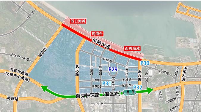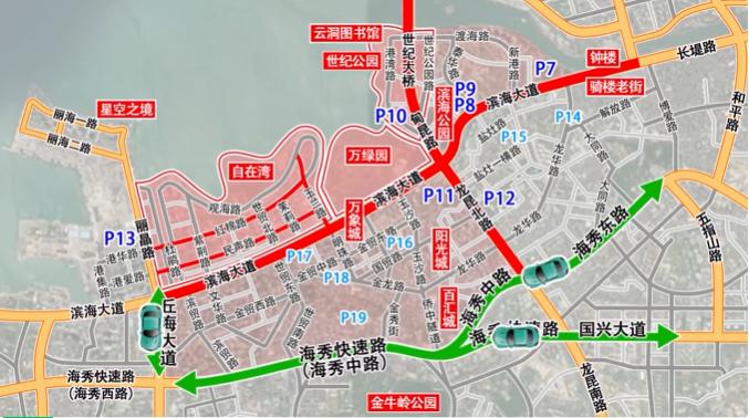 途经社会车辆视情绕行滨江路、凤翔路、椰海大道,避开府城片区车辆集中路段。