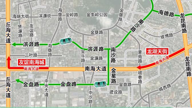 途经社会车辆视情绕行南沙路、滨涯路、金盘路,避开南海大道车辆集中路段。