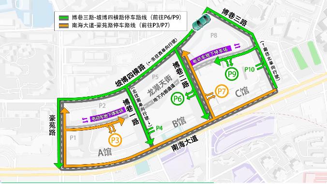 龙湖天街前往车辆请根据现场交通指示有序进场,规范停车。请勿长时间占用南海大道、豪苑路等商场门前道路停车上下客,影响正常通行。