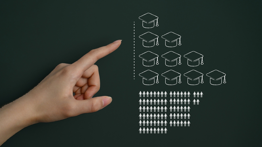 我国研究生尤其是博士生数量,在总人数中的占比还远落后于发达国家。据不完全统计,中国大概有120万博士,占总人口的比例不足0.1%。相比之下,美国博士占人口比重是1.04%,英国是0.78%,德国是0.8%,日本0.52%。